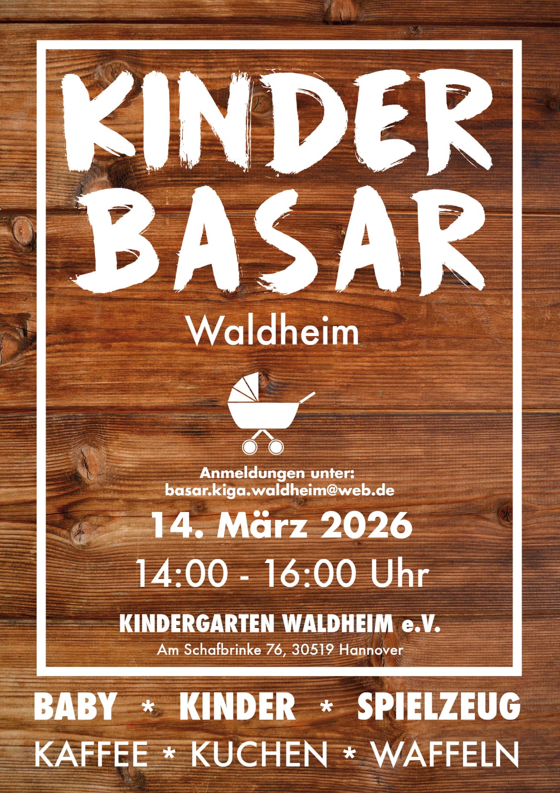 Kinderbasar am 14.03.2025 um 14:00 bis 16:00 Uhr im Kindergarten Waldheim Flyer