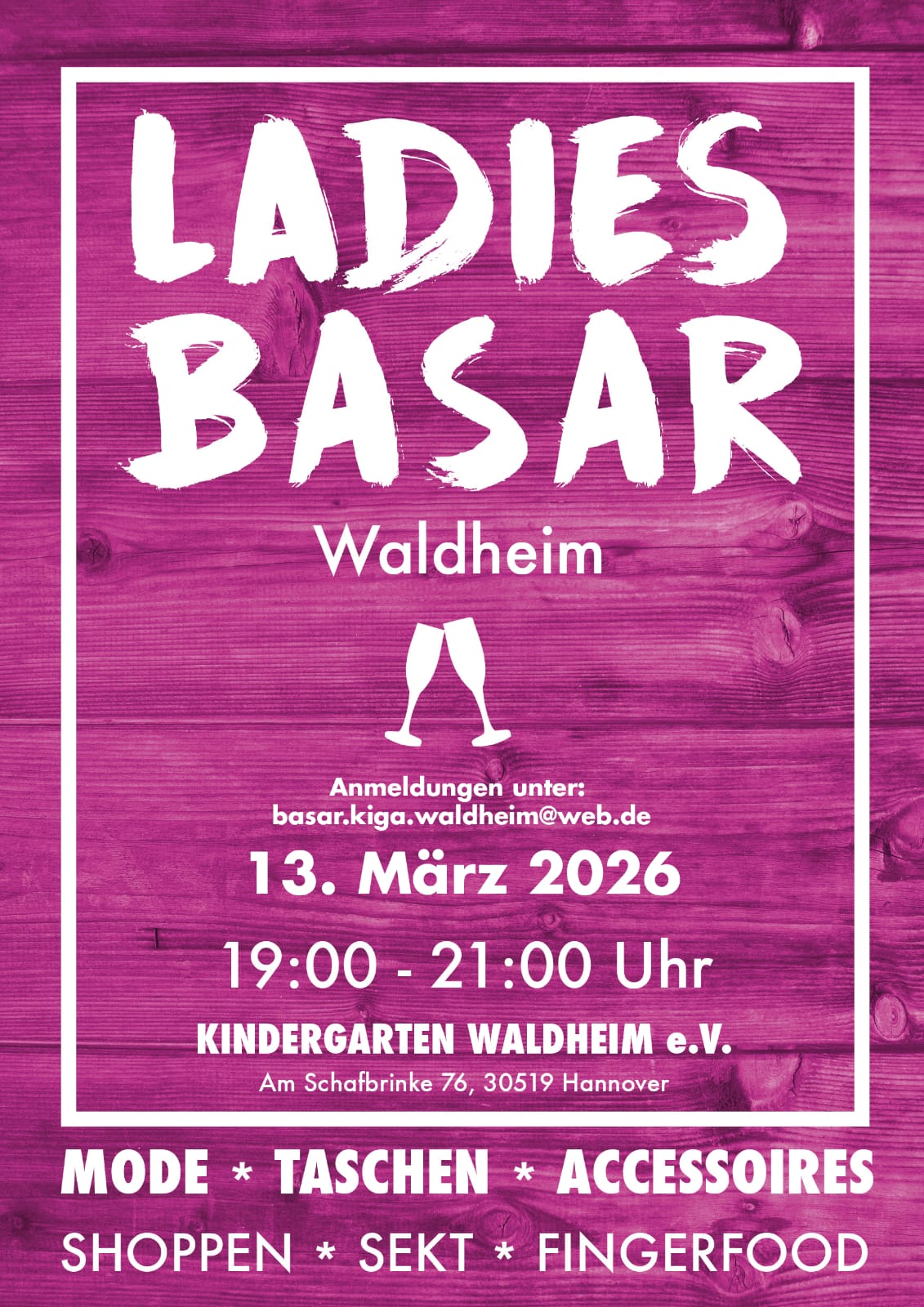 Ladiesbasar am 13.03.2026 um 19:00 bis 21:00 Uhr im Kindergarten Waldheim Flyer